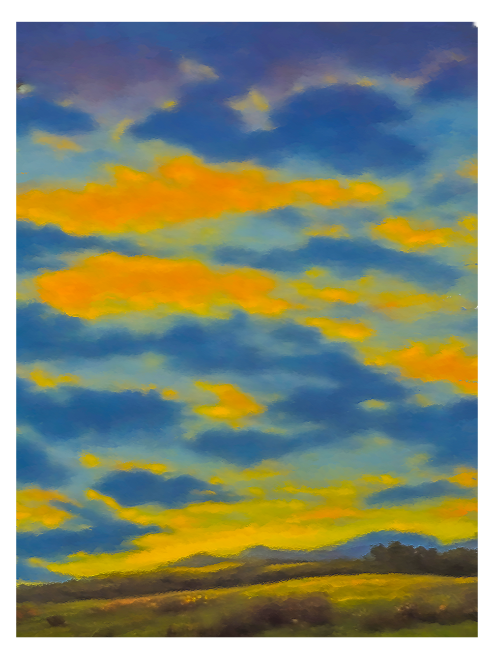I drew inspiration from my love of nature and the innovative use of artificial intelligence. My hope is that viewers of this piece will be transported to a place of serenity and beauty, where they can escape from the stresses of the day and simply enjoy the majesty of the natural world. The use of warm, golden tones and dramatic lighting enhances the mood and feeling of the painting, creating a sense of peace and calmness that is both captivating and inspiring.